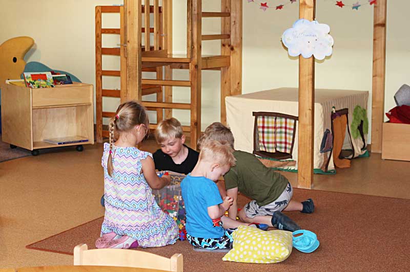 ….. befindet sich im Nebengebäude und betreut 9 Kinder im Alter von 0-3 Jahren und 8 Kinder im Alter von 3-4 Jahren.